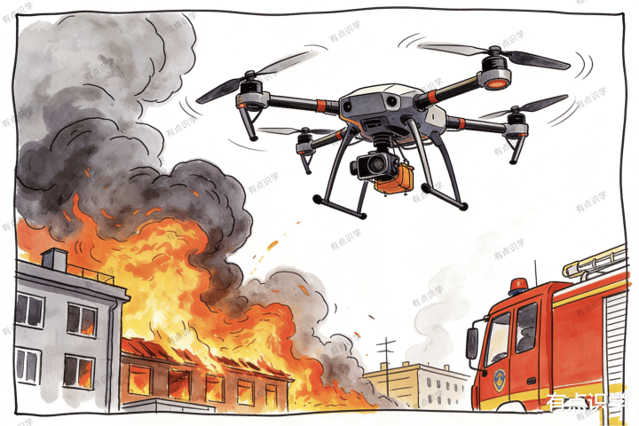 真正的天降神兵,体积迷你。别小看它,这是“空中侦察兵”。能飞入有毒、高温、人员难以接近的区域,实时图传火场情况,甚至能空投救援物资。现代救援的“上帝视角”。